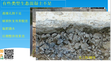 一、傳統混凝土,是指用水泥作膠凝材料,砂、石作骨料,與水按一定比例配合,經攪拌而得的水泥混凝土,也稱普通混凝土,它廣泛應用于土木工程。但是,普通混凝土材料是一種堿性材料,一般不能生長植物,用于河道護坡,對生態具有較大的破壞作用。